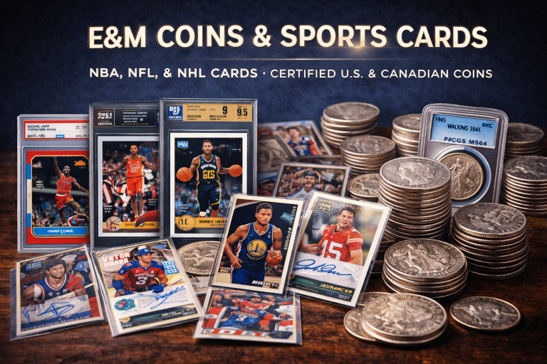 At E&M Coins & Sports Cards, we offer a carefully curated selection of high-quality U.S. coins and sports cards for collectors and investors of all levels. Our inventory includes certified and raw collectibles from the NBA, NFL, and NHL, alongside authentic U.S. Mint coinage.